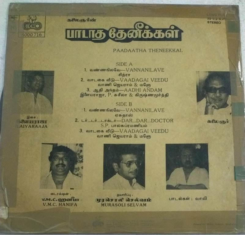 Paadatha Theneekkal Tamil Film LP Vinyl Record by Ilayaraaja