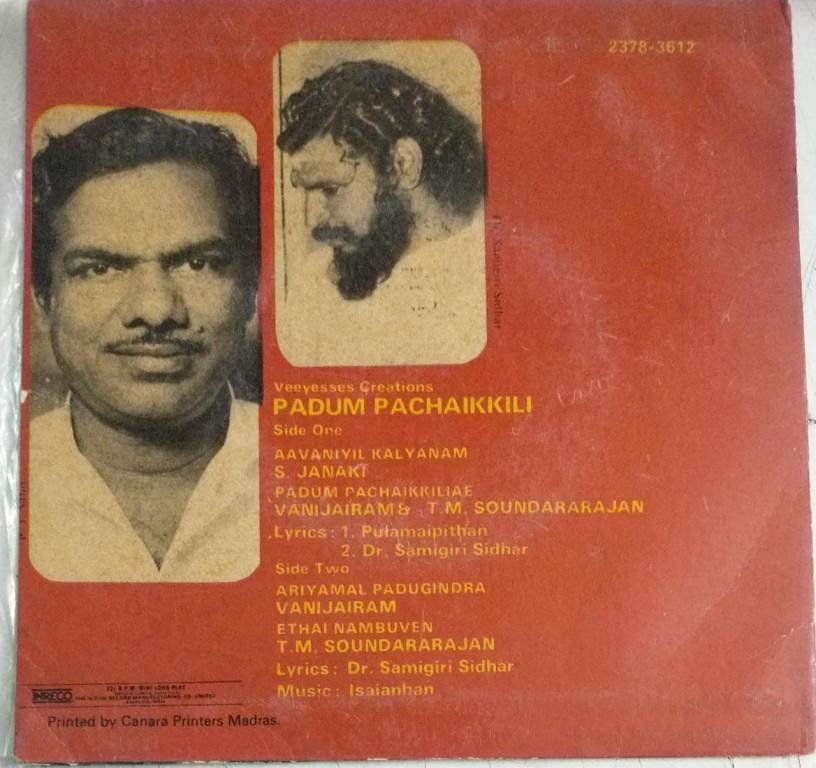 Paadum Pachaikiligal Tamil Film EP Vinyl Record by Isaianban