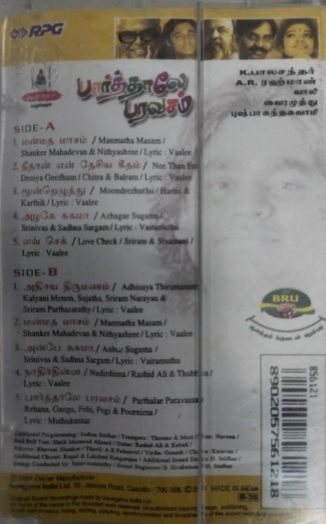 Paarthaley Paravasam Tamil Audio Cassette by AR Rahmann