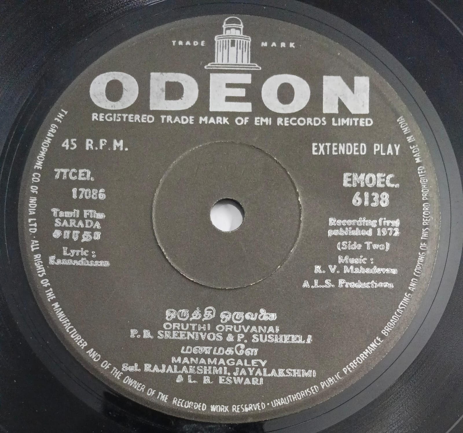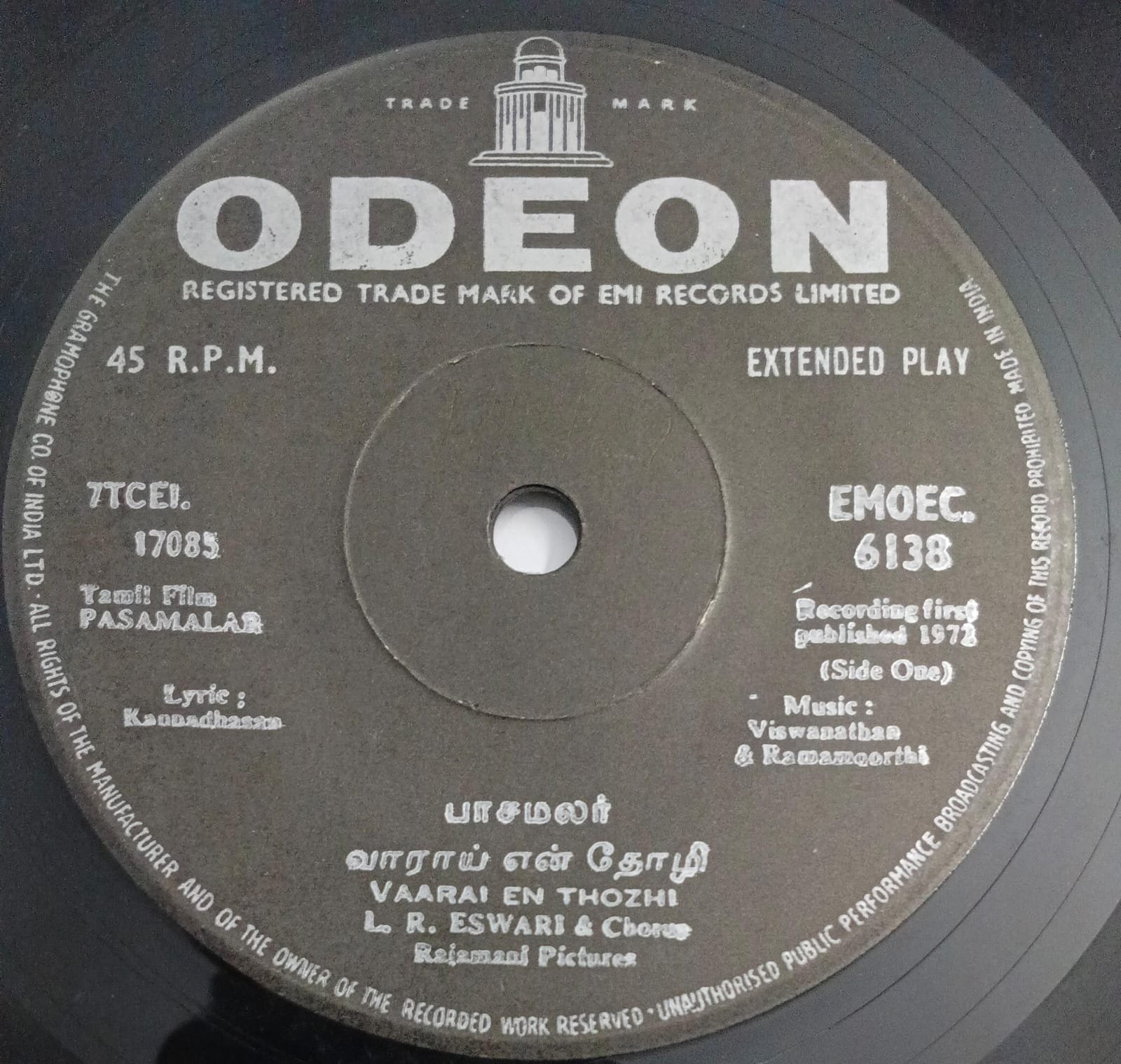 Paasamalar Tamil Film EP Vinyl Record by M S Viswanathan 6138