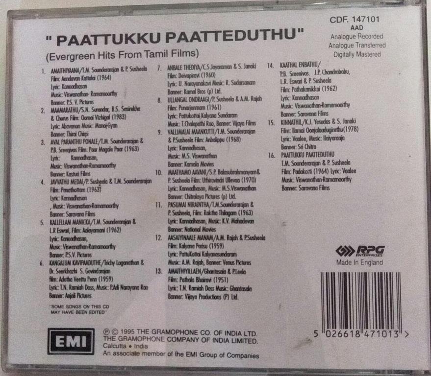 Paattukku Paatteduthu Tamil Film hits Audio CD