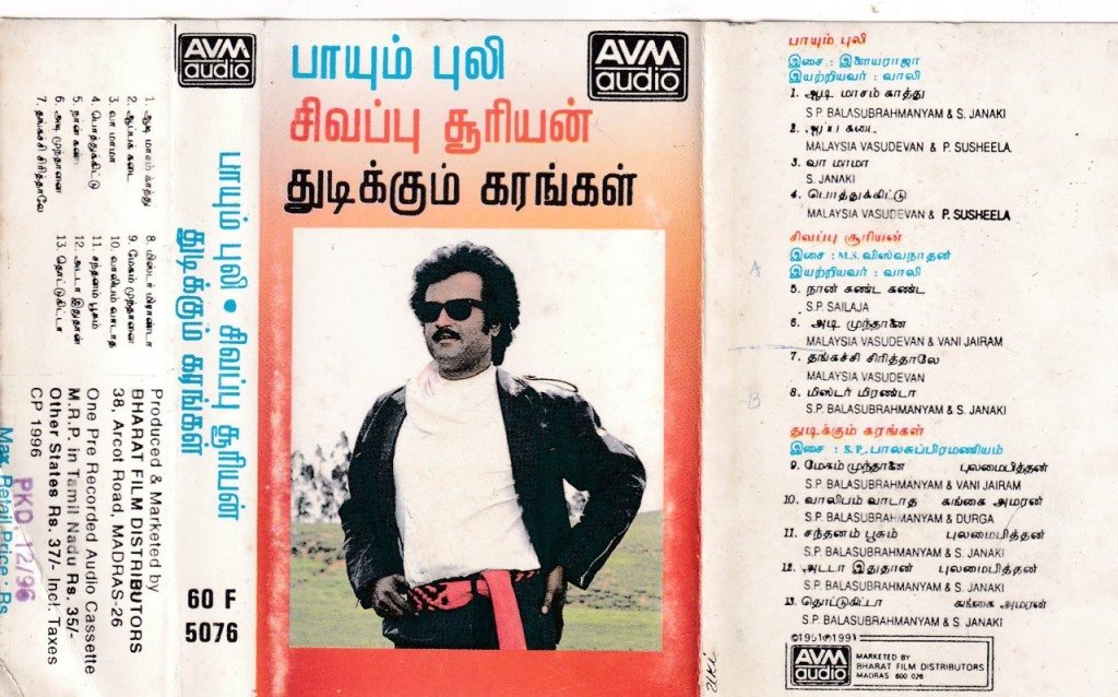 Paayum Puli – Sivappu Suriyan – Thudikkum Karangal Tamil Film Audio Cassette by Ilaiyaraja