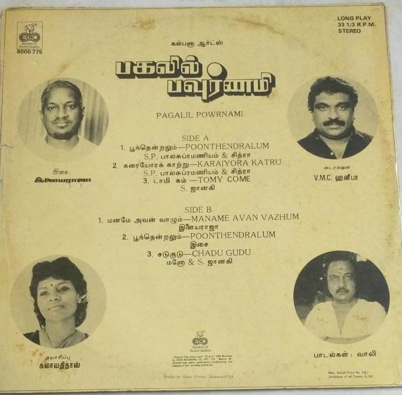 Pagalil Powrnami Tamil Film LP Vinyl Record by Ilayaraaja