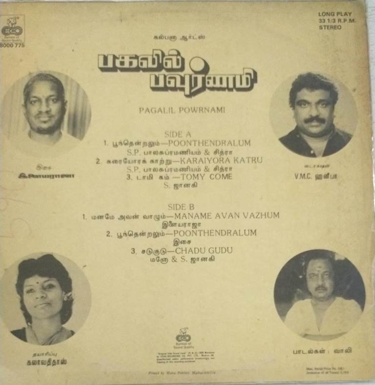 Pagalil Powrnami Tamil Film LP Vinyl Record by Ilayraaja