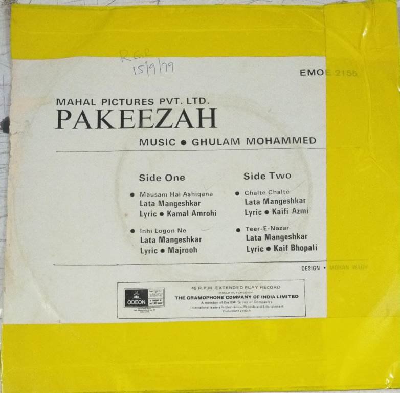 Pakeezah Hindi Film EP Vinyl Record by Ghulam Mohammed