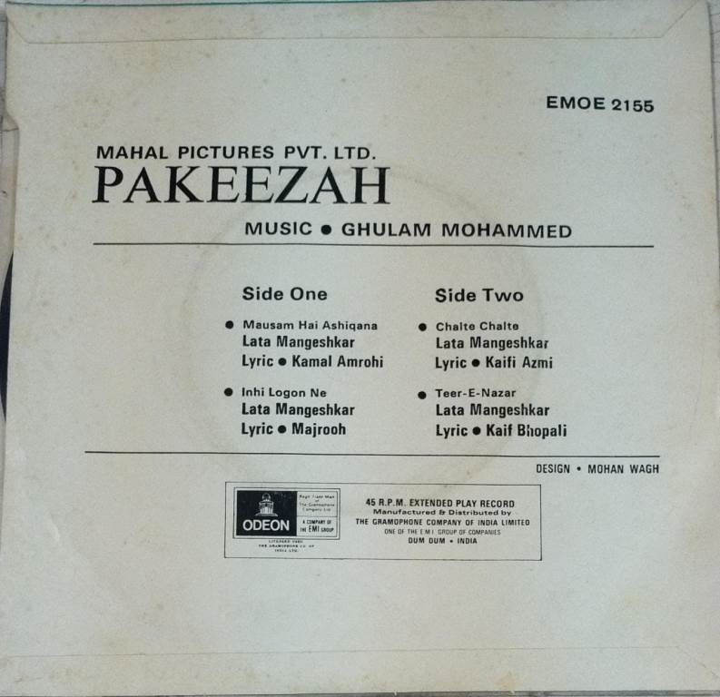 Pakeezah Hindi Film EP Vinyl Record by Ghulam Mohammed