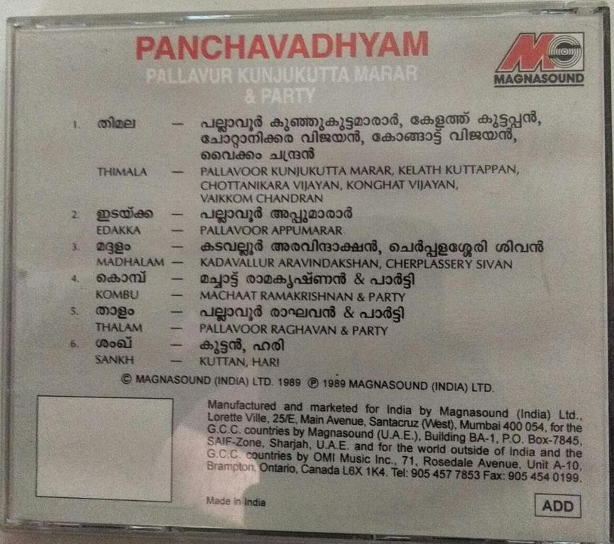 Panchavadhyam Instrumental Audio CD