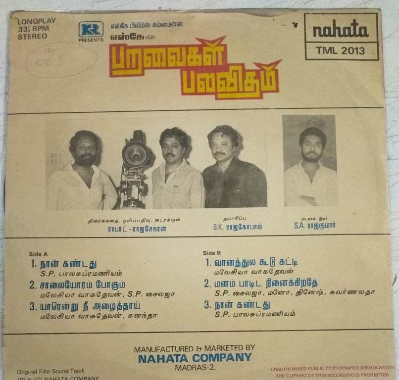 Paraivagal Palavitham Tamil Film LP Vinyl Record by SA Rajkumar