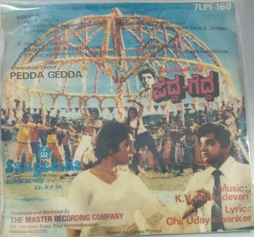 Pedda Gedda Telugu Film EP Vinyl Record by KV Mahadevan
