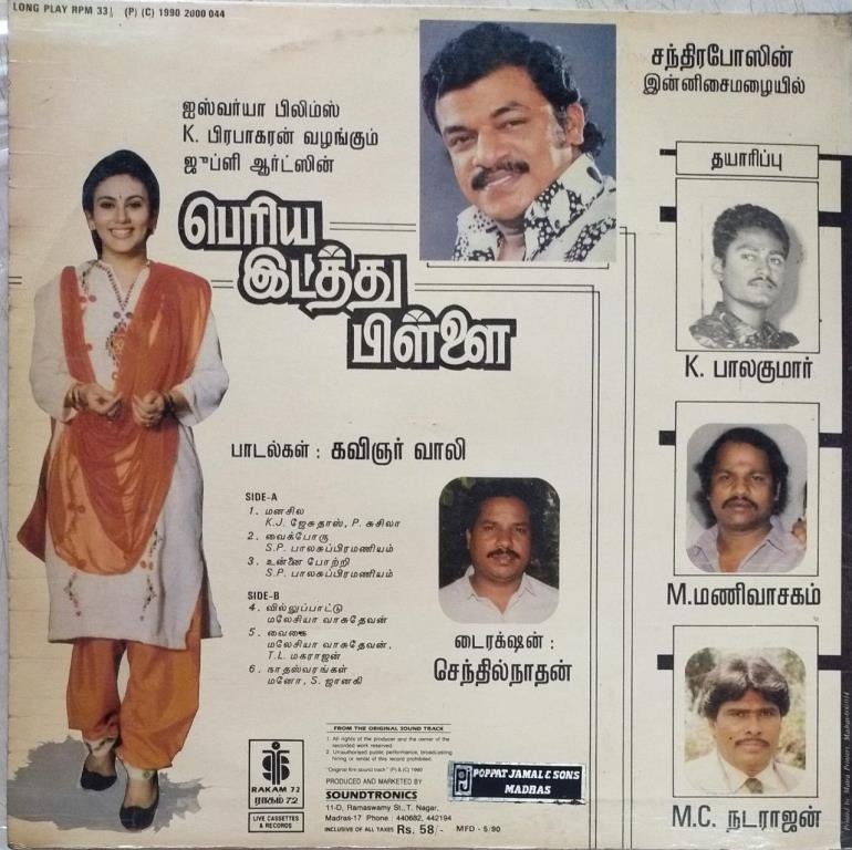 Peria Idathu Maapillai Tamil Film LP Vinyl Record by Chandrabose