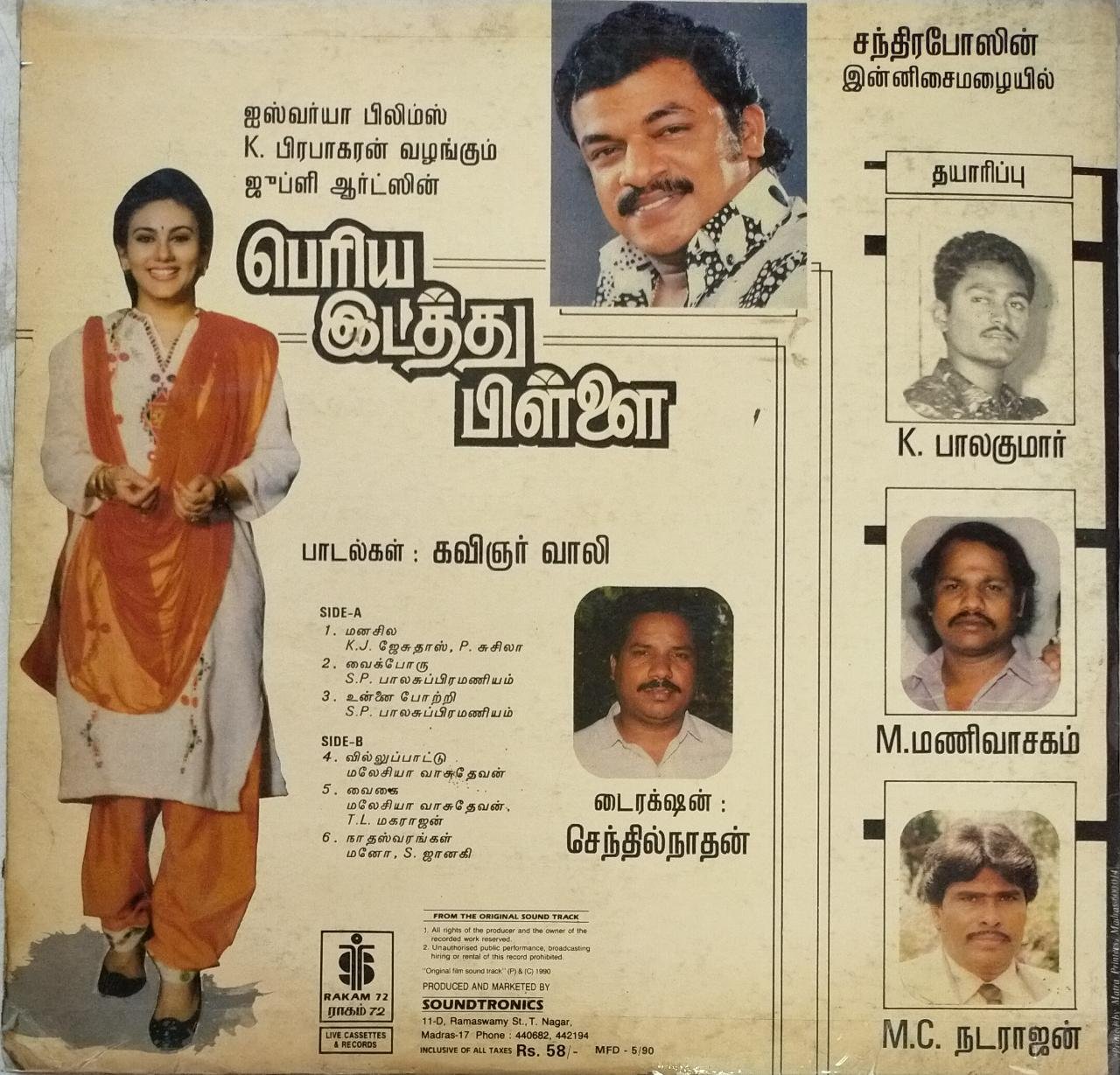Peria Idathu Maapillai Tamil Film LP Vinyl Record by Chandrabose
