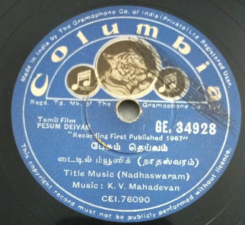 Pesum Deivam Tamil Film 78 RPM Gramophone record GE 34928