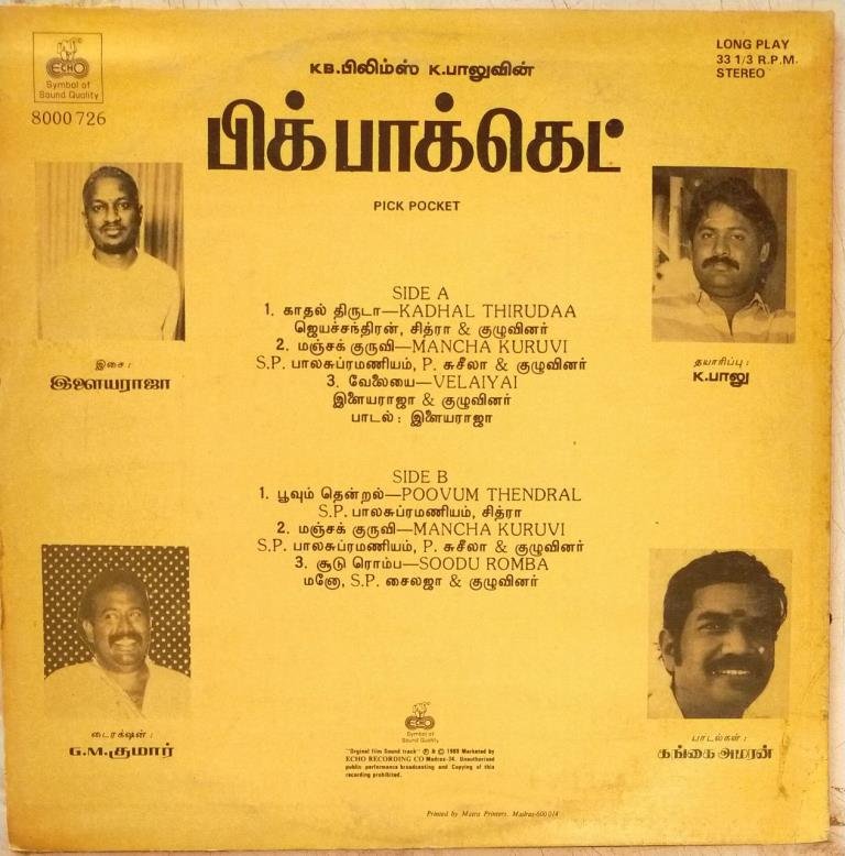 Pick Pocket Tamil FIlm LP Vinyl Record by Ilayaraja