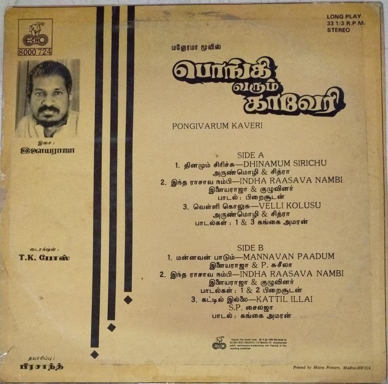Pongivarum Kaveri Tamil Film LP Vinyl Record by Ilayaraja