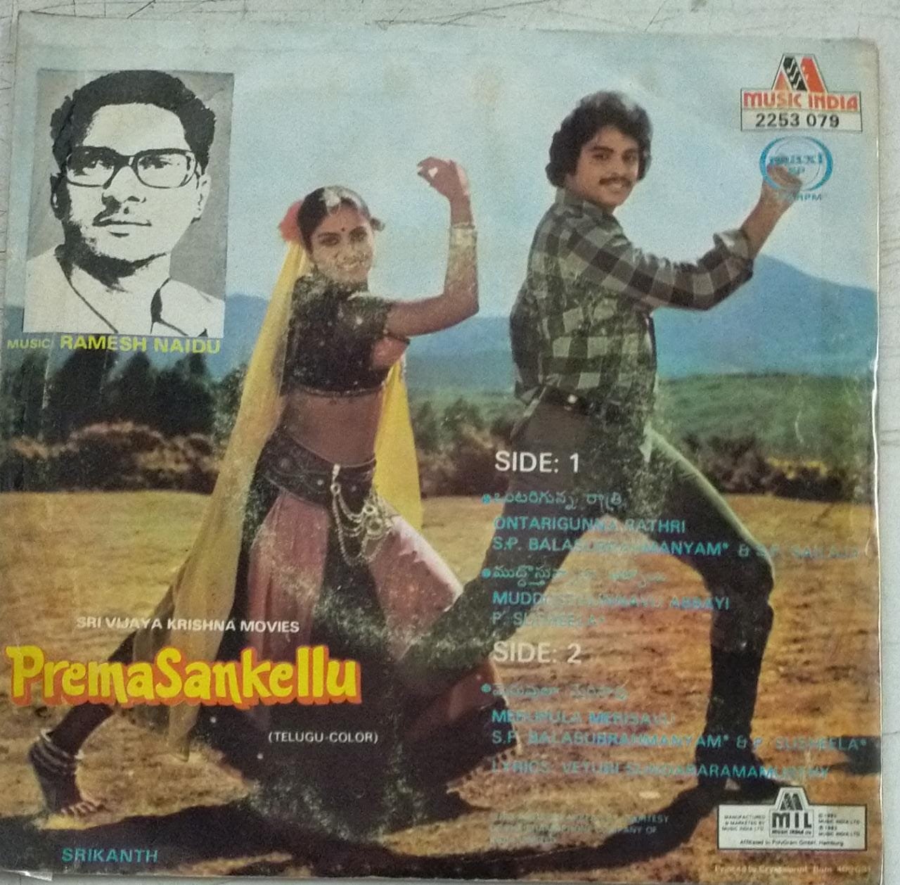 Prema Sankellu Telugu Film EP Vinyl Record by Ramesh Naidu
