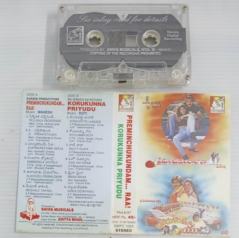 Preminchukundam Raa- Korukunna Priyudu Telugu Film songs Audio Cassette