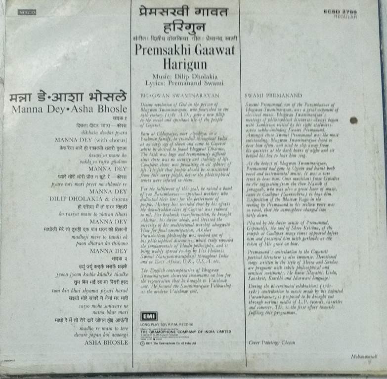 Premsakhi Gaawat Harigun HIndi LP Vinyl Record by Manna Dey- Asha Bhosle