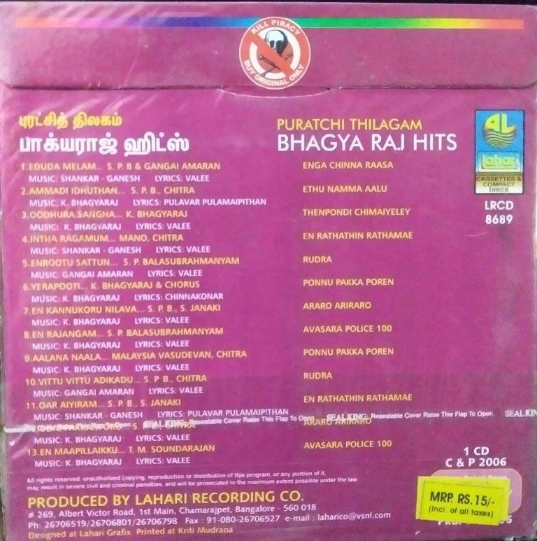 Purathchi Thilaga Bhagya Raj Hits Tamil Audio CD