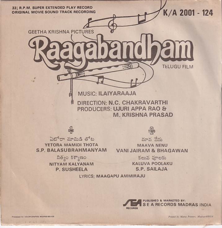 RaagabBhandham Telugu EP Vinyl record by Ilayaraja