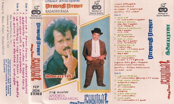 Raajathi Raaja- Apoorva Sagotharargal Tamil Film Audio Cassette by Ilayaraaja