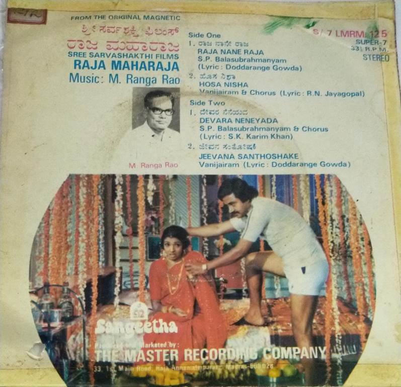 Raja Maharaja Kannada Film EP Vinyl Record by M Ranga Rao