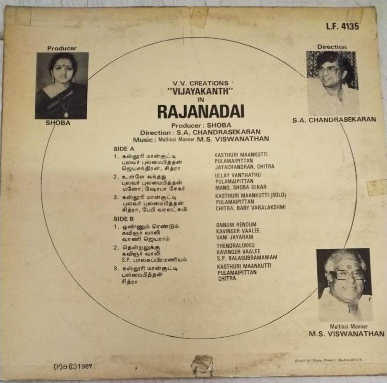 Raja Nadai Tamil Film LP Vinyl Record by M S Viswananthan
