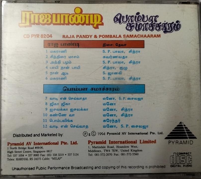 Raja Pandy – Pombala Samacharam – Tamil Audio CD by Deva
