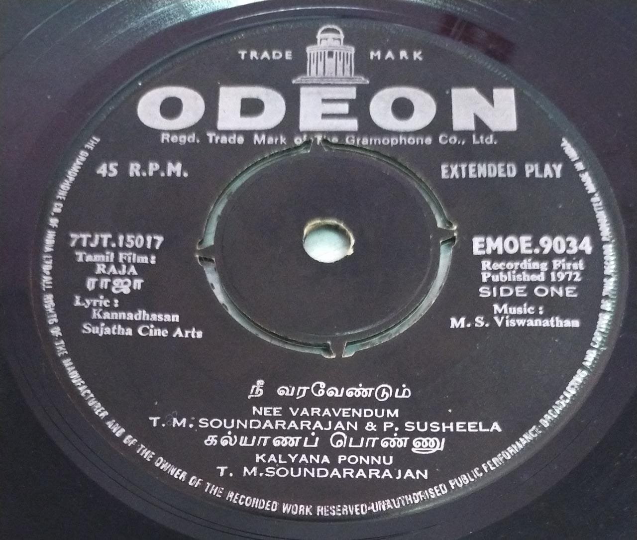 Raja Tamil Film EP Vinyl Record by M S Viswanathan