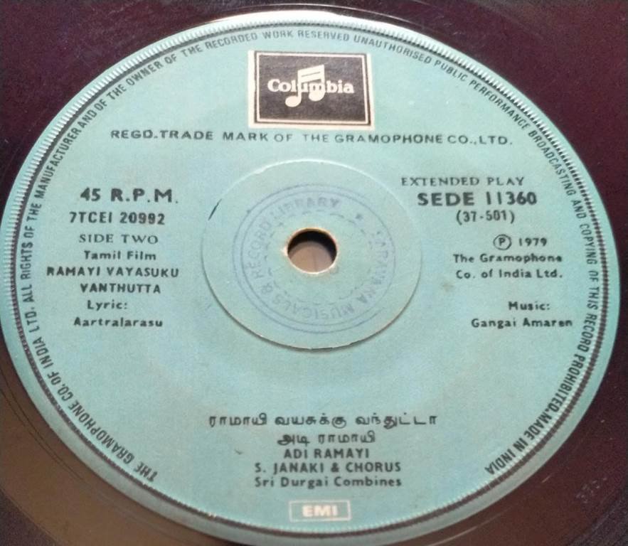 Ramayi Vayasuku Vanthutta Tamil Film EP Vinyl Record by Gangai Ameran