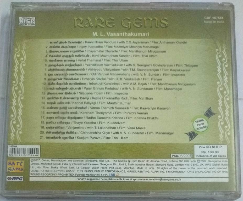 Rare Gems M L Vasanthakumari Classical Audio CD