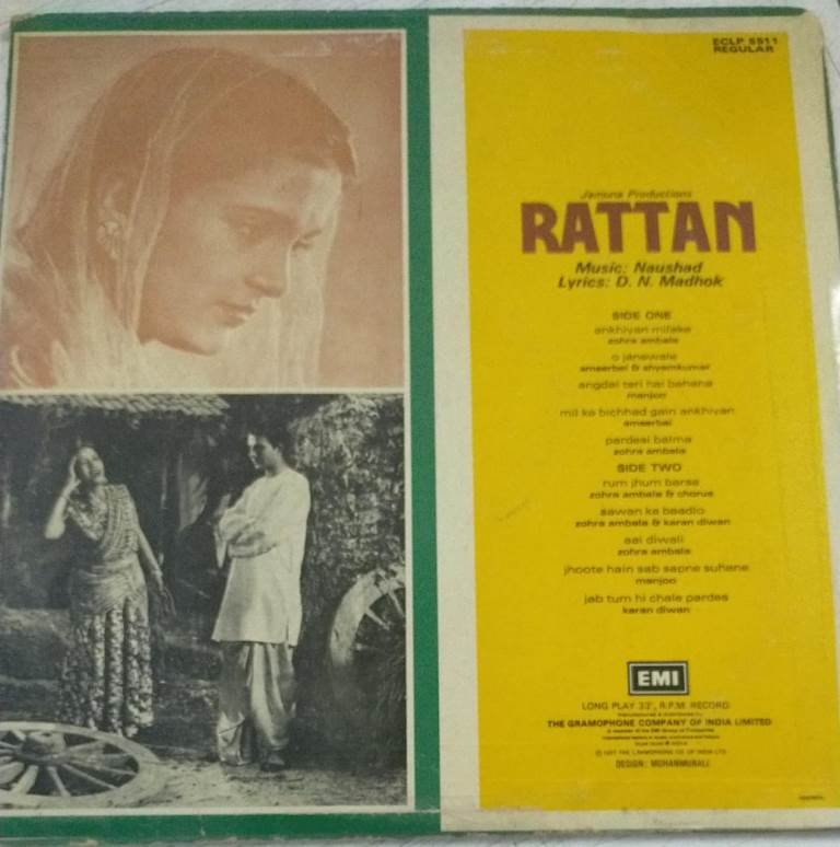 Rattan Hindi Film LP VInyl Record by Naushad