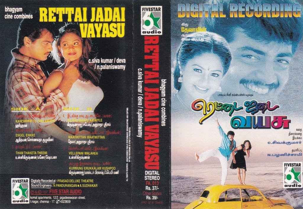 Rettai Jadai Vayasu Tamil Film Audio Cassette by Deva