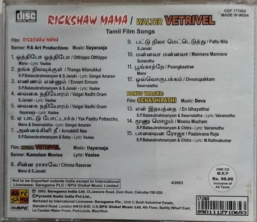 Richshaw Mama- Valter Vetrivel Tamil Film Audio CD by Ilayaraaja