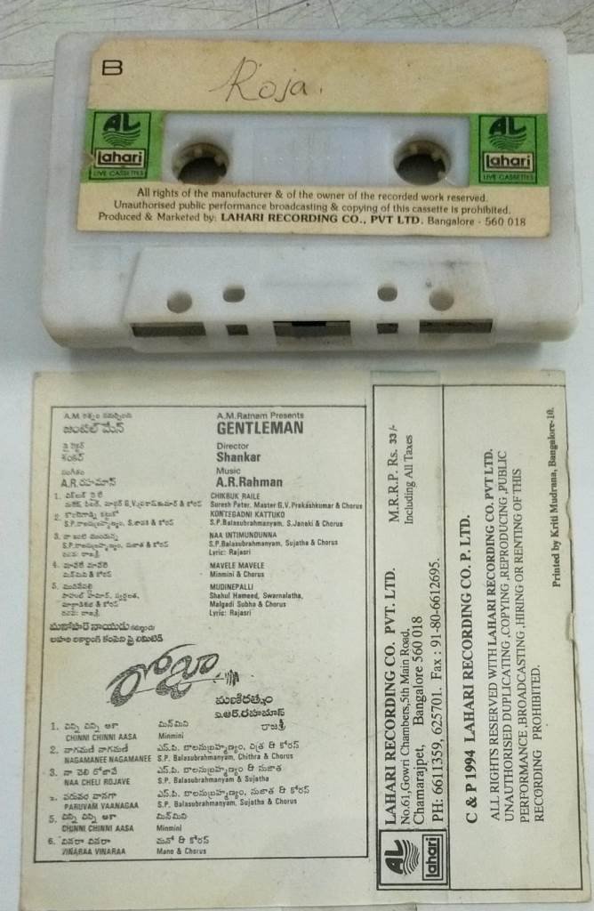 Roja – Gentleman Telugu Film Audio Cassette by AR Rahman