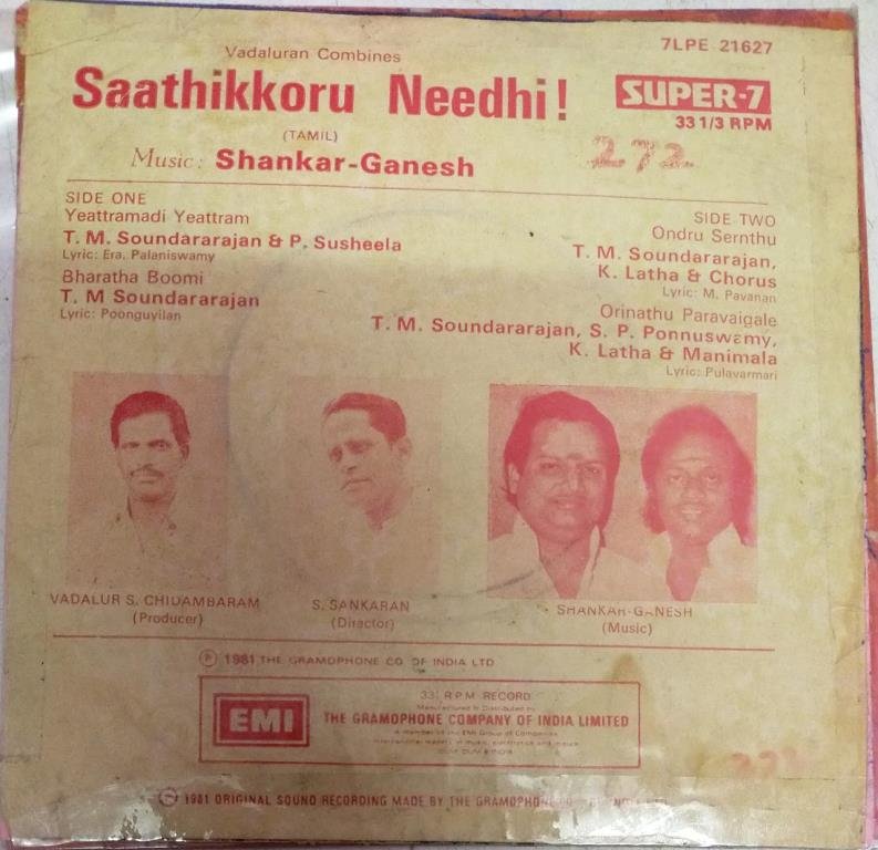 Be the first to review “Saathikkoru Needhi Tamil Film EP VInyl Record by Shankar Ganesh”