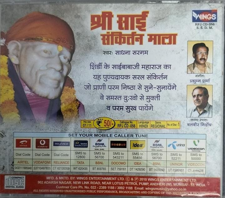 Be the first to review “Saibaba Devotional songs Audio CD”