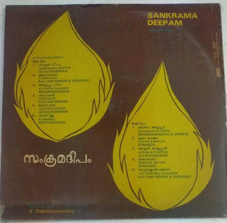 Sankara Deepam Malayalam Devotioanl LP Vinyl Record by V Dakshinamoorthy
