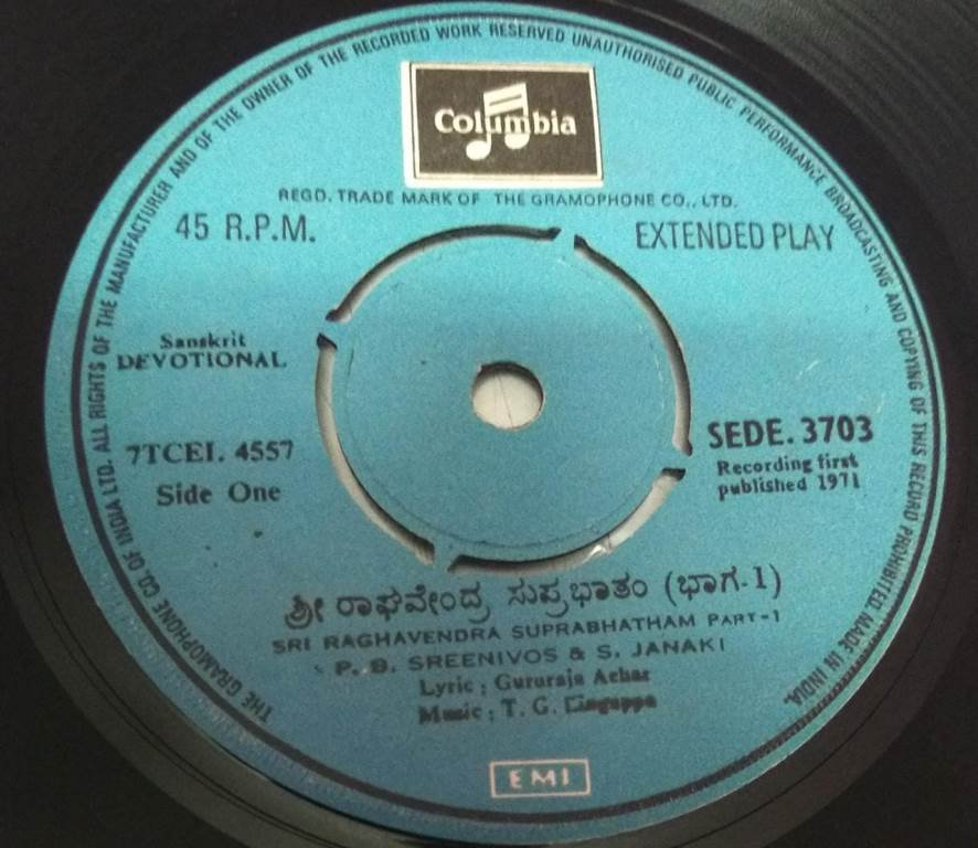 Sanskrit Devotional EP Vinyl record by T G Lingappa 3703