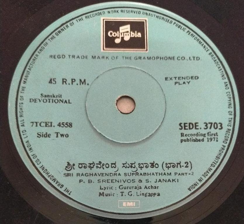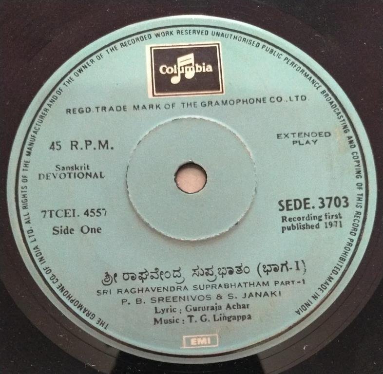 Sanskrit Devotional EP Vinyl Record by TG Lingappa 3703