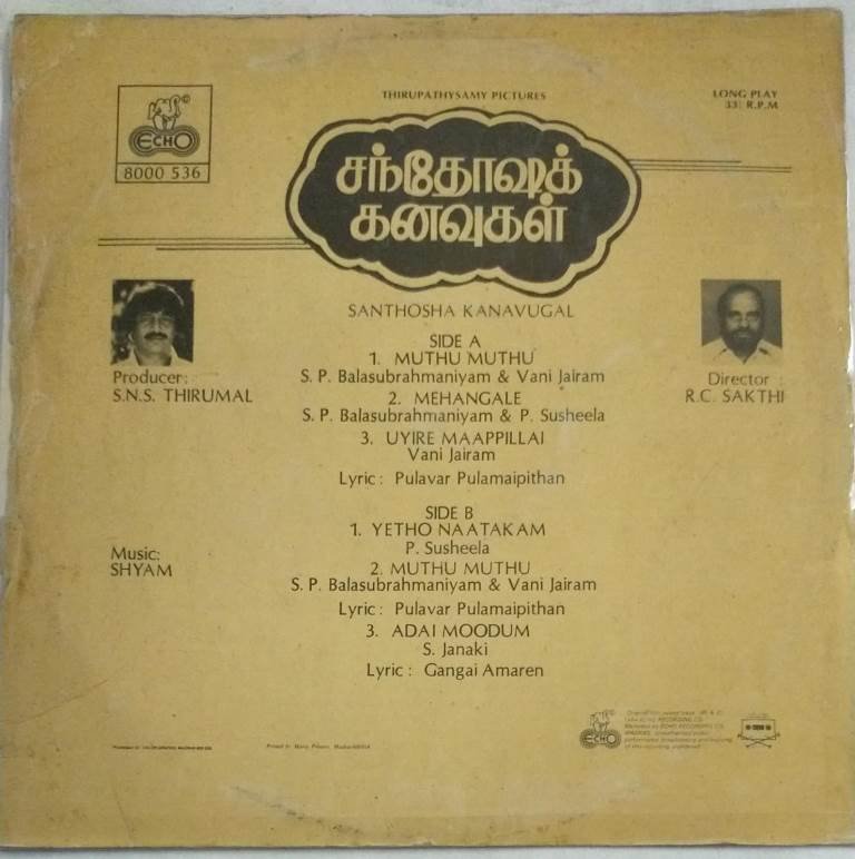 Santhosha Kanavugal Tamil Film LP Vinyl Record by Shyam