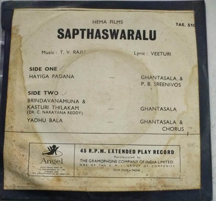 Sapthaswaralu Telugu Film EP Vinyl Record
