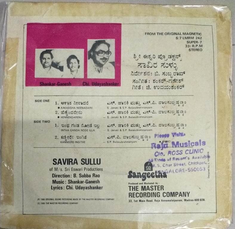 Be the first to review “Savira Sullu Telugu Film EP Vinyl Record by Shankar Ganesh”