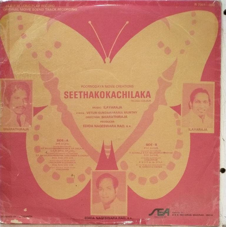 Seethakoda Chilaka Telugu Film LP Vinyl Record by Ilayaraja
