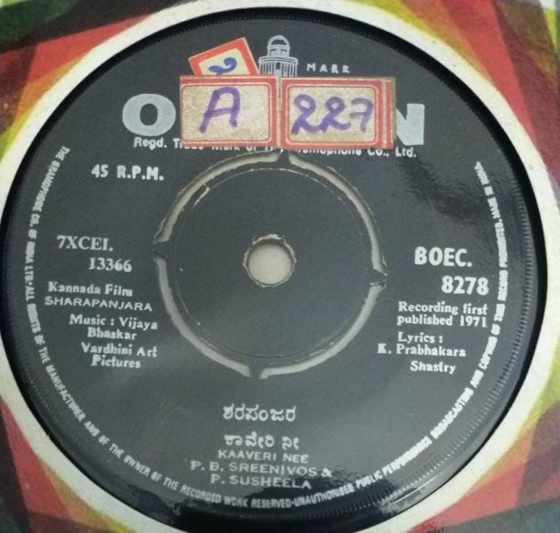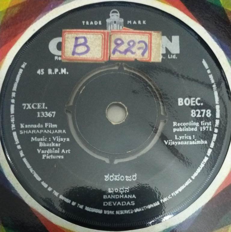 Sharapanjara Kannada film EP Vinyl Record by Vijayabhaskhar