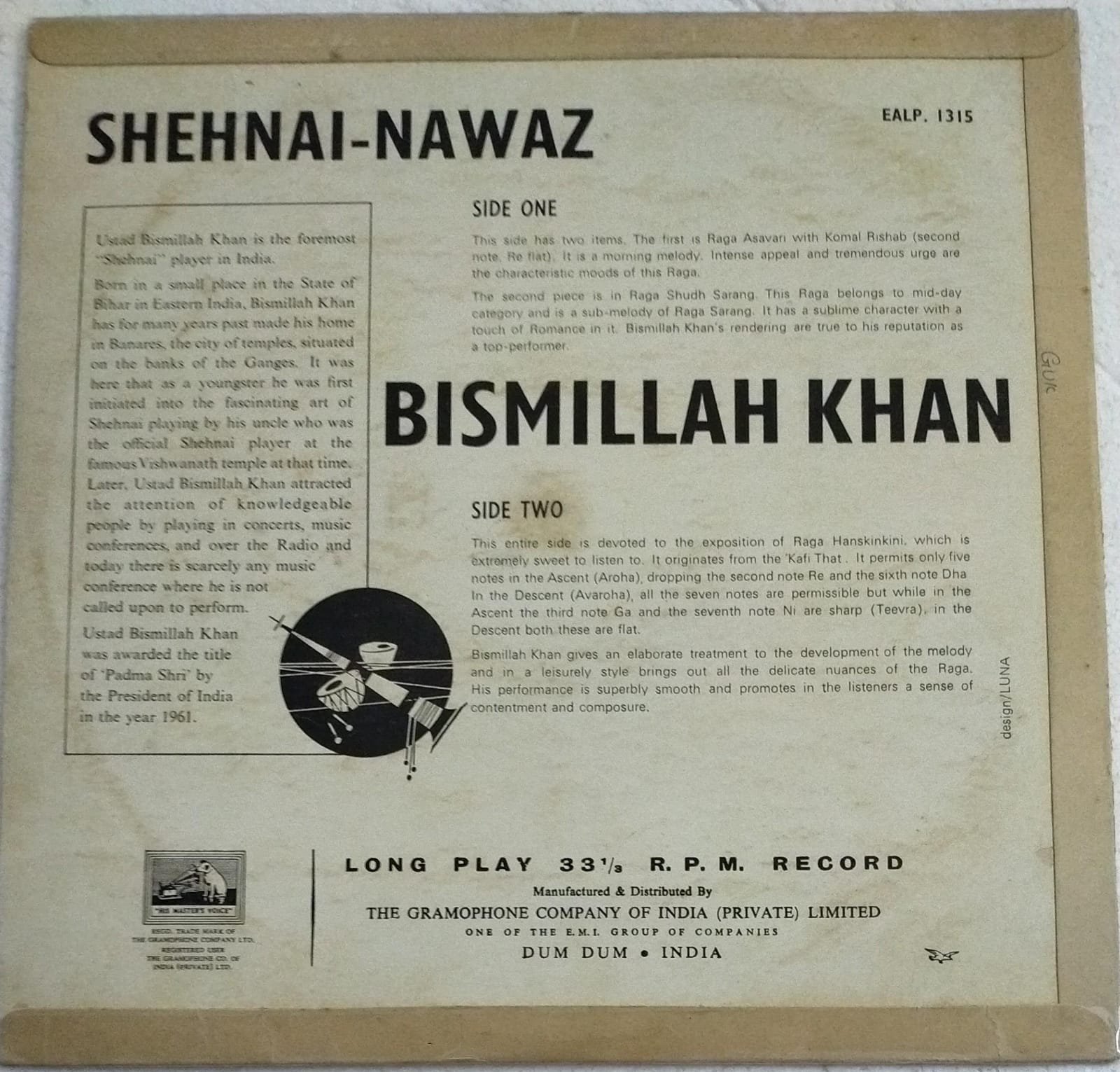 Shehnai Nawaz Instrumental LP Vinyl Record by Bismillah Khan