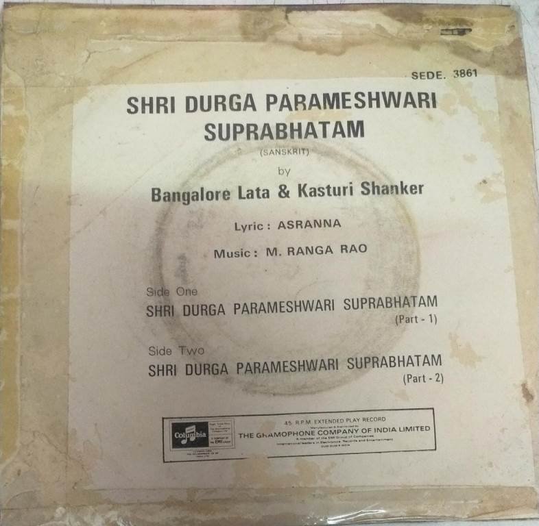 Shri Durga Parameshwari Suprabhatam Kannda devotional EP Vinyl Record by Ranga Rao