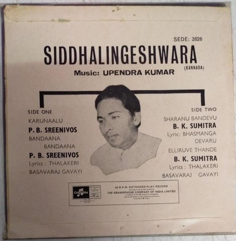 Siddalingeshwara Kannada Devotional Vinyl Record by Upendrakumar
