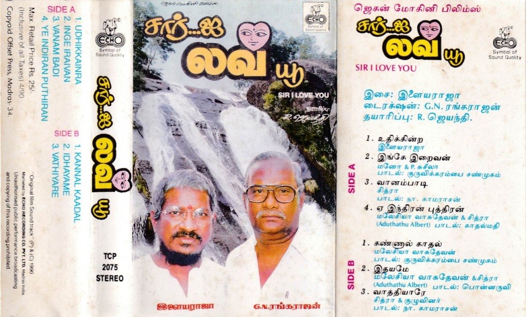Sir I Love You Tamil Film Audio Cassette by Ilaiyaraja