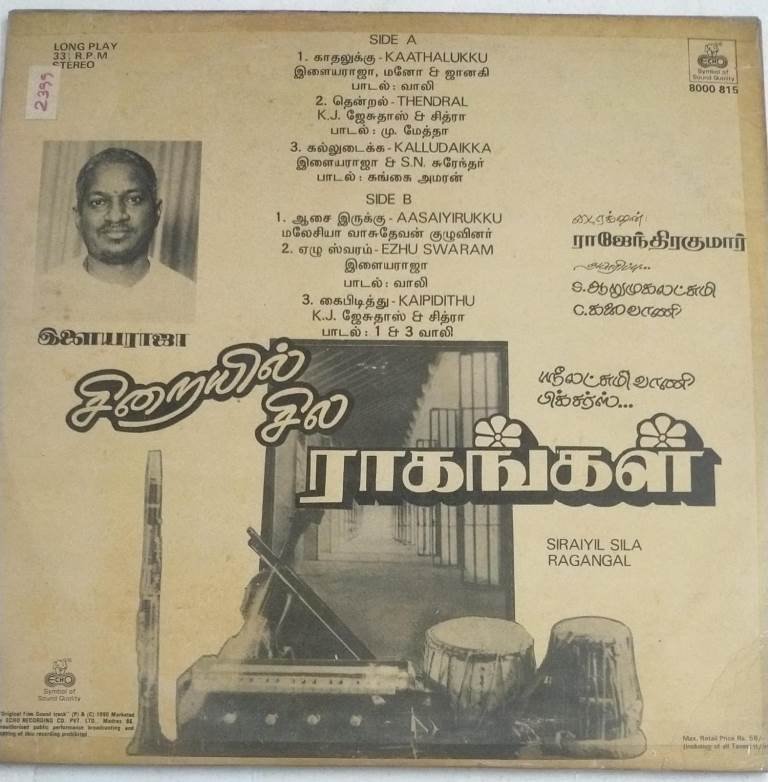 Sirayil Sila Ragangal Tamil Film LP Vinyl Record by Ilayaraaja