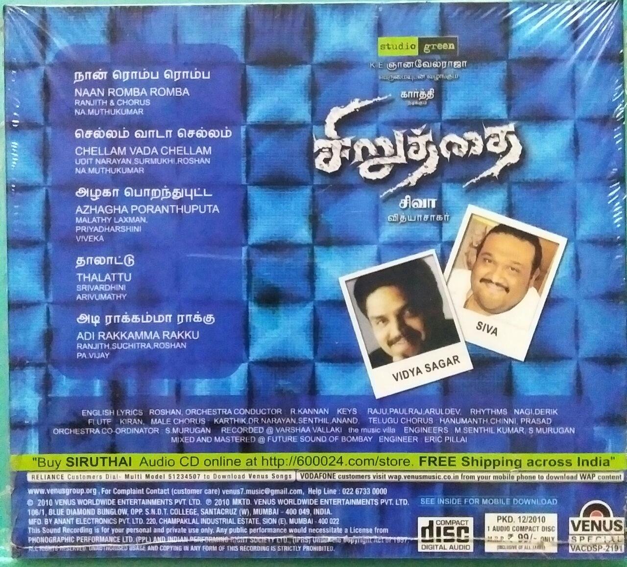 Sirutthai Tamil Audio CD by Vidhyasagar
